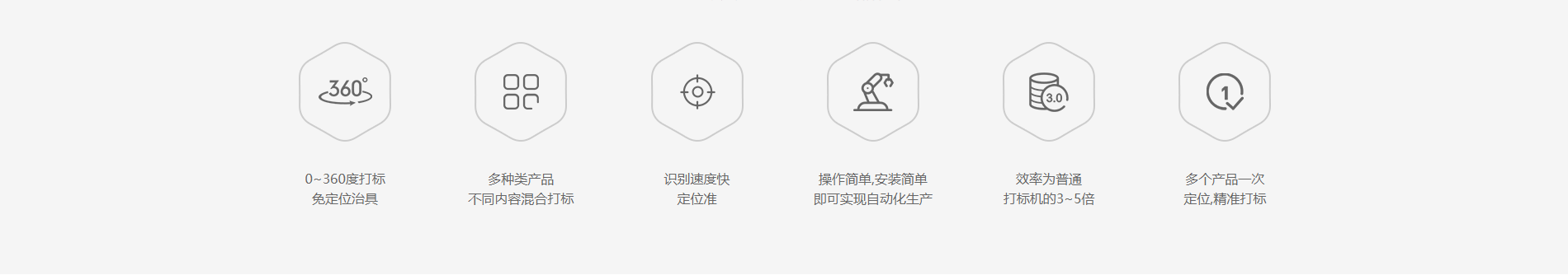 基于传统打标机的基础,采用高精度CCD相机对产品当前位置的捕捉,并将实时采集到的一个或者多个产品的位置信息,通过电脑依次传给打标卡,从而实现精准打标。